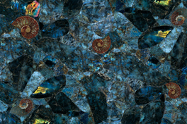 这种石块是一种嵌入菊石以及贝类动物鹦鹉螺旋花纹的月光石形成的,它们都来自马达加斯加。月光石是各种各样的长石展现出纯蓝的珍珠光泽类似于青铜色光泽。这种特殊的半宝石同样也是半透明的,给予眼球双重的吸引力。它的颜色一直在变化,并且有一种几乎全息效应。随着不断变化的颜色从一个孔雀色调到另一个。月光石是一种可以吸收消极性,刺激自我恢复以及缓解嫉妒作用的长石。