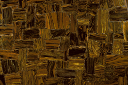 虎铁半宝石是一种当金色虎眼,红碧玉以及黑赤铁矿石英混合在一起形成的一个充满活力的颜色波纹模式。这种半宝石经过手工垂直切片十分巧妙,在它自身的美丽上增添了一种不一样的感觉。受到70年代折中主义者的灵感启发,“复古”风格的虎铁是一系列的原始当代半宝石设计,它在被用做铺装地板时特别的迷人。 物理性能:硬度6.5-7、比重2.5-2.61、折射率1.53 – 1.55。 治疗特性:这三个被认为是它的三种接地水晶的品质:老虎的眼底并给予自我耐心,赤铁矿的感情防护,红色碧玉是连接地球的一个接点。